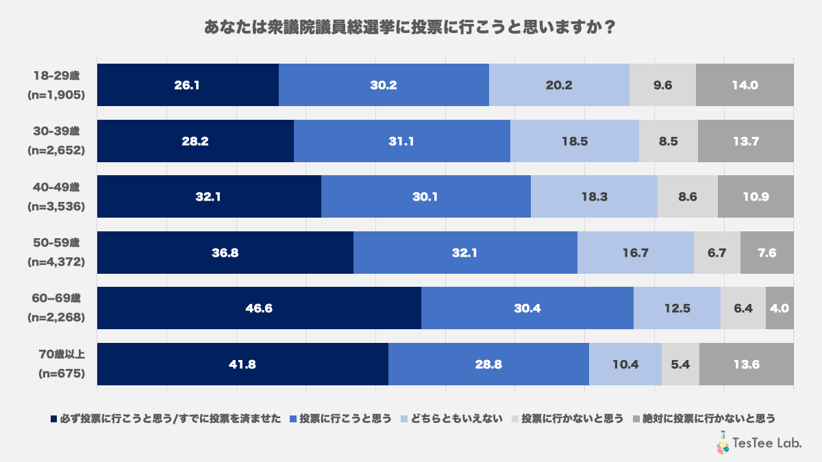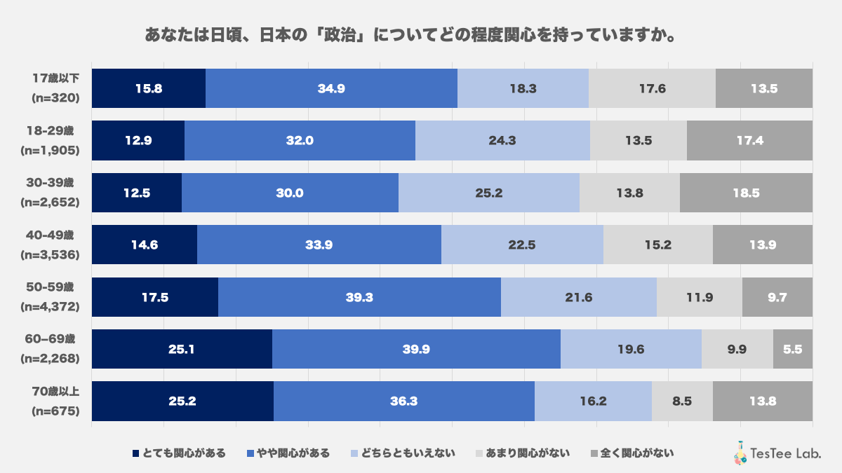 若年層リサーチ結果を発信する「TesTee Lab」にて、来る衆議院議員総選挙を前に、年代別の政治への関心や政策への期待度、選挙への参加意向に関する調査結果をご紹介します。